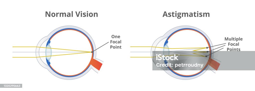 Astigmatism is a refractive error that occurs when the front surface of your eye (cornea) or the lens inside the eye is slightly irregular or cylindrical in shape, resulting in vision being blurred or distorted at all distances. Astigmatism is not a disease, but a common visual condition.