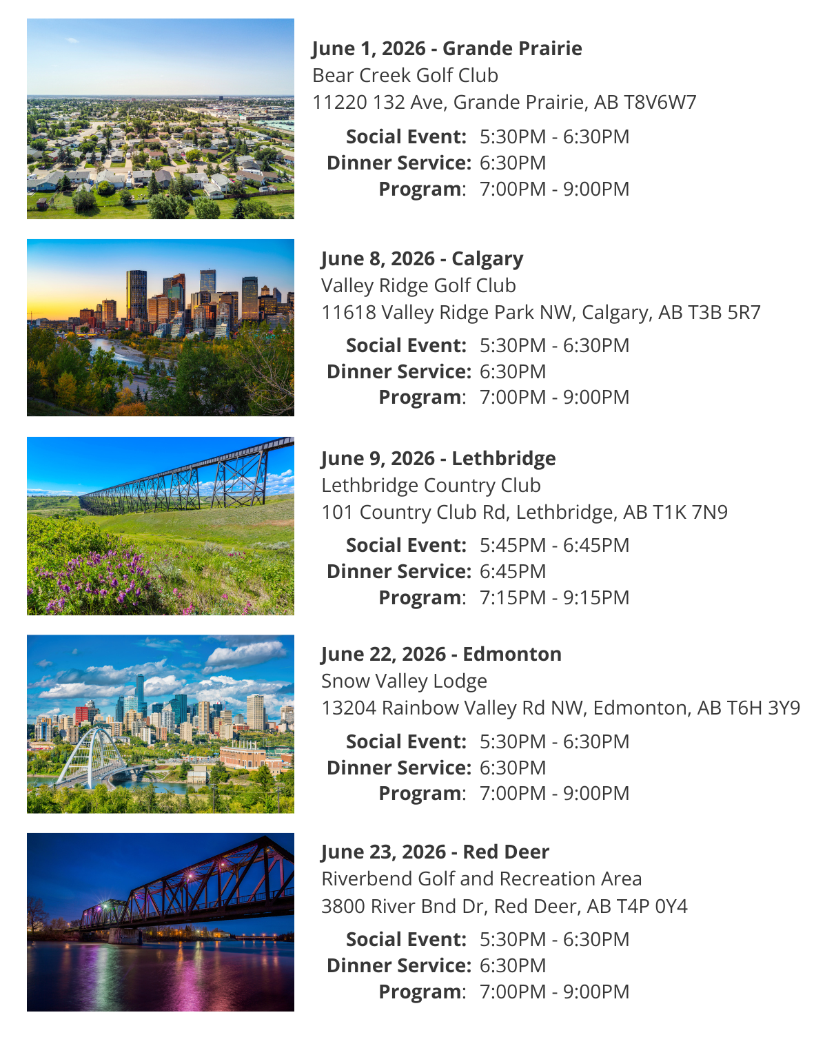 You’re invited to join us for an upcoming regional meeting and dinner, where the Alberta Association of Optometrists (AAO) and the Alberta College of Optometrists (ACO) will: